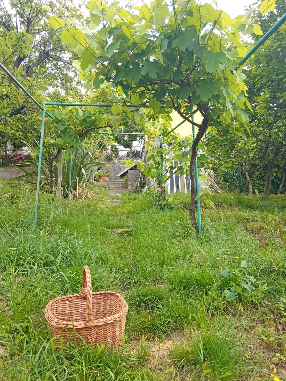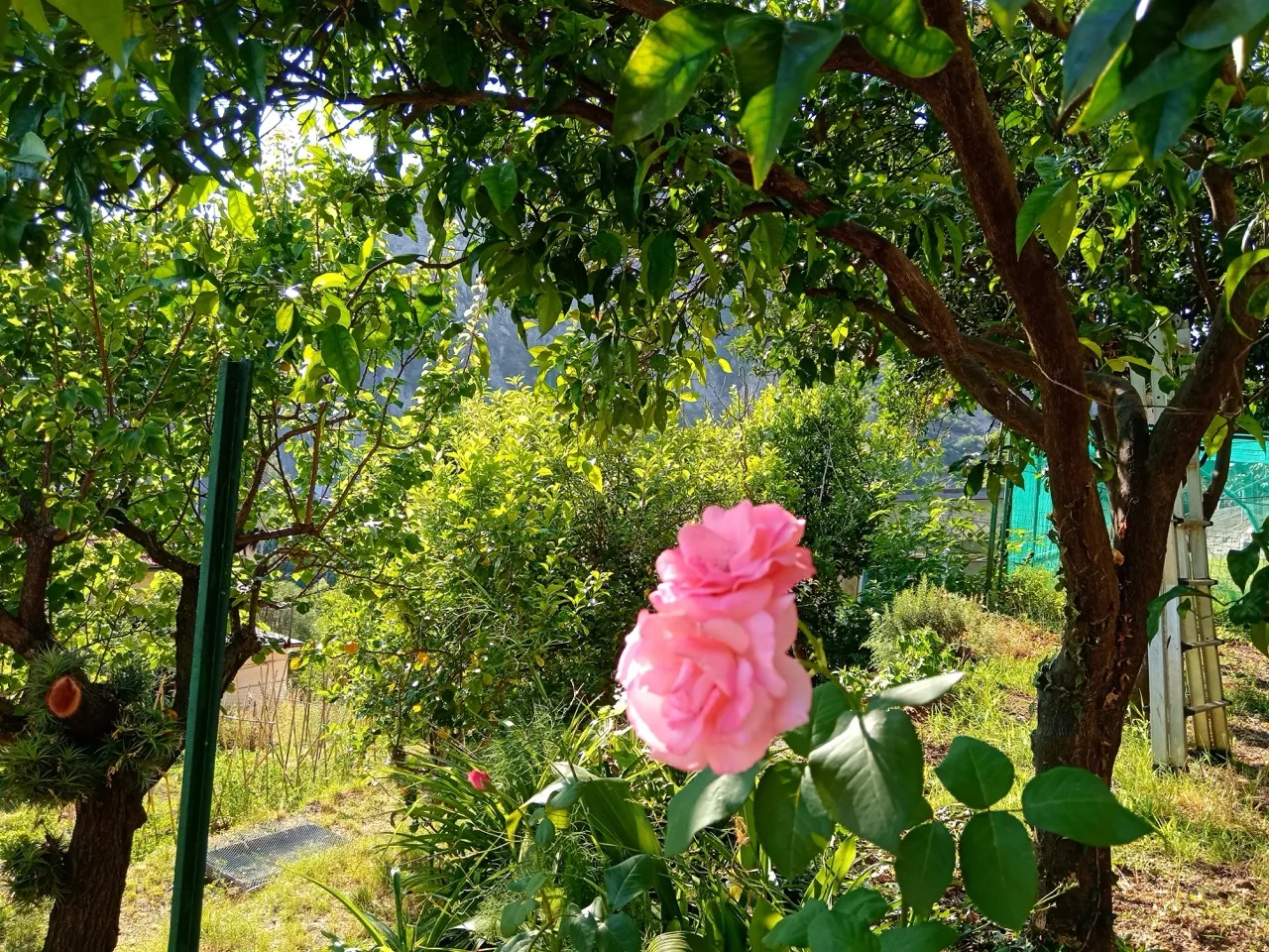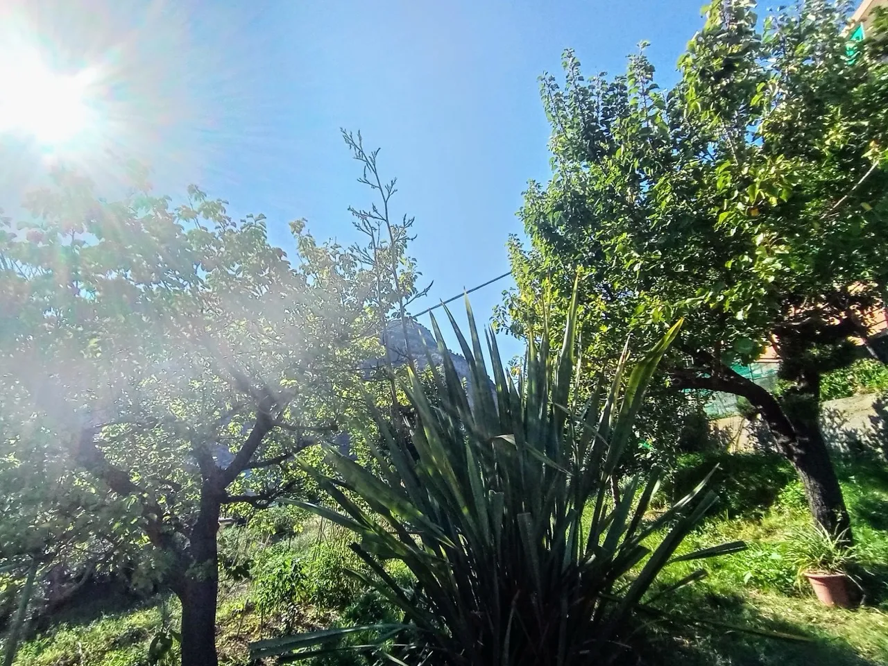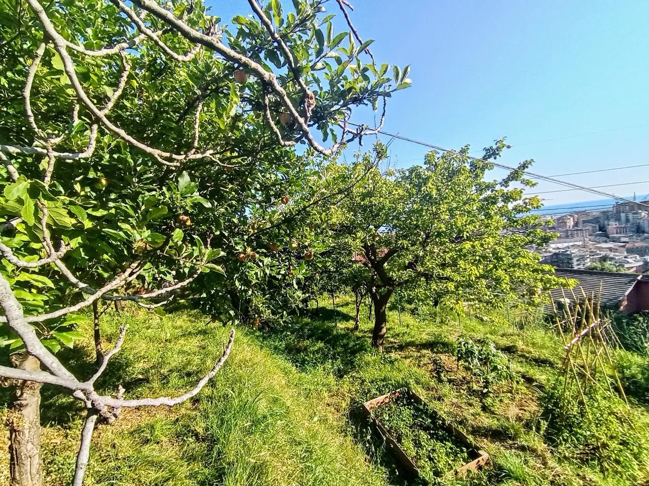 Un'ampio terreno terrazzato coltivabile di oltre 500 mq con numerosi e vari alberi da frutto (ciliegi, prugni, aranci, cedri, fichi, nespoli, albicocchi, meli, cachi, uva fragola, kiwi, ulivi, etc.), erbe aromatiche (asparagi e finocchio selvatici, rosmarino, tarassaco, borragine, etc.), piante e fiori ornamentali (magnolia, passiflora, alloro, sambuco, viole mammole, trifogli, etc.), verdure (patate, zucche, zucchine, cavolini, cetrioli, pomodori, melanzane, etc.) con ricovero attrezzi, capanno e forno a legna per la pizza artigianale.
