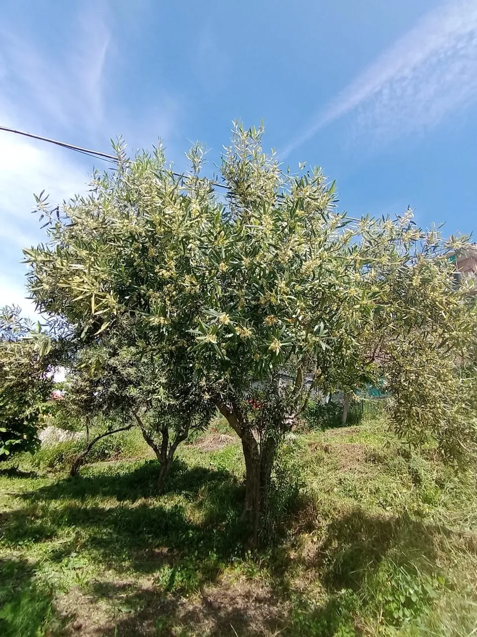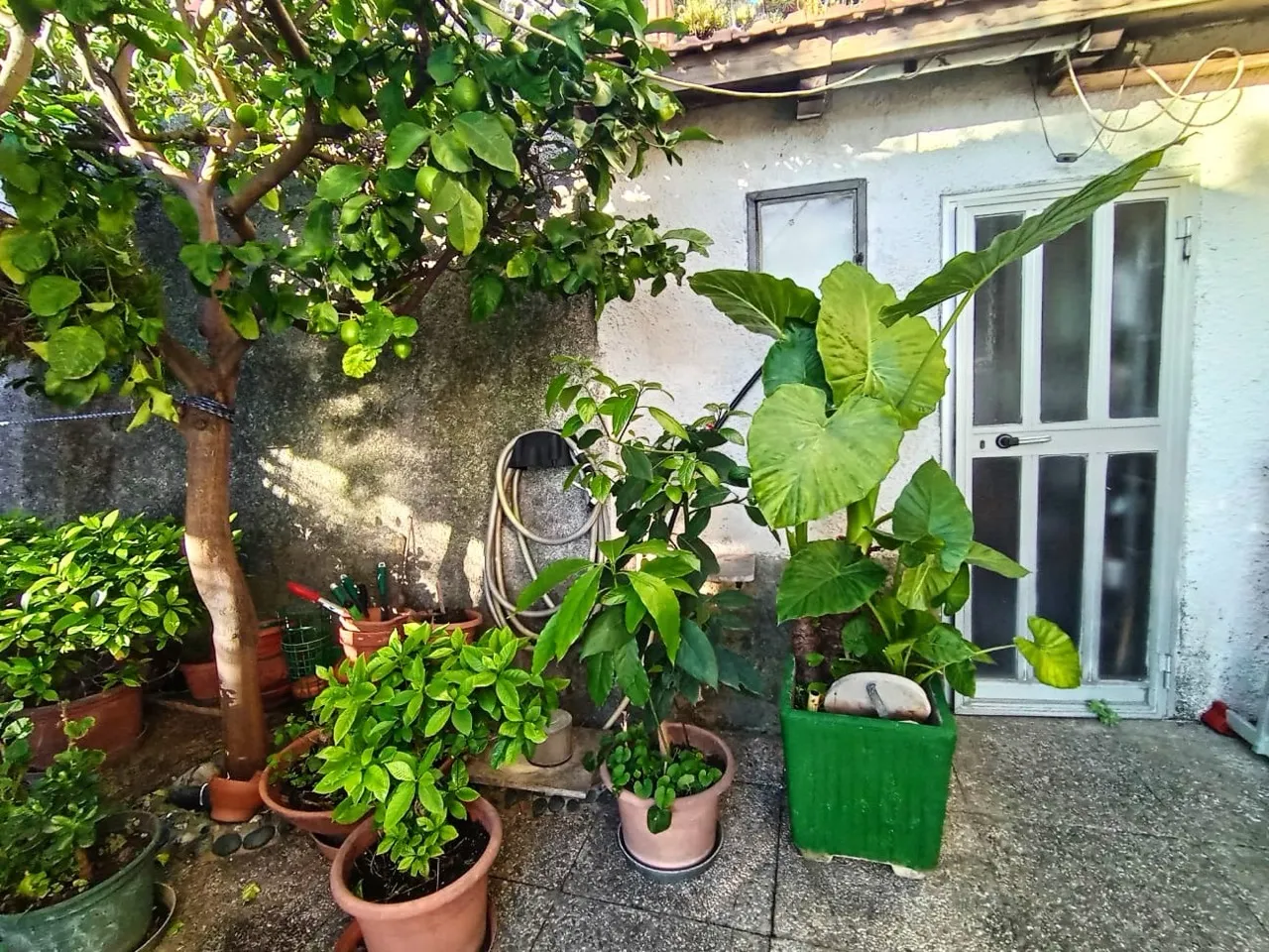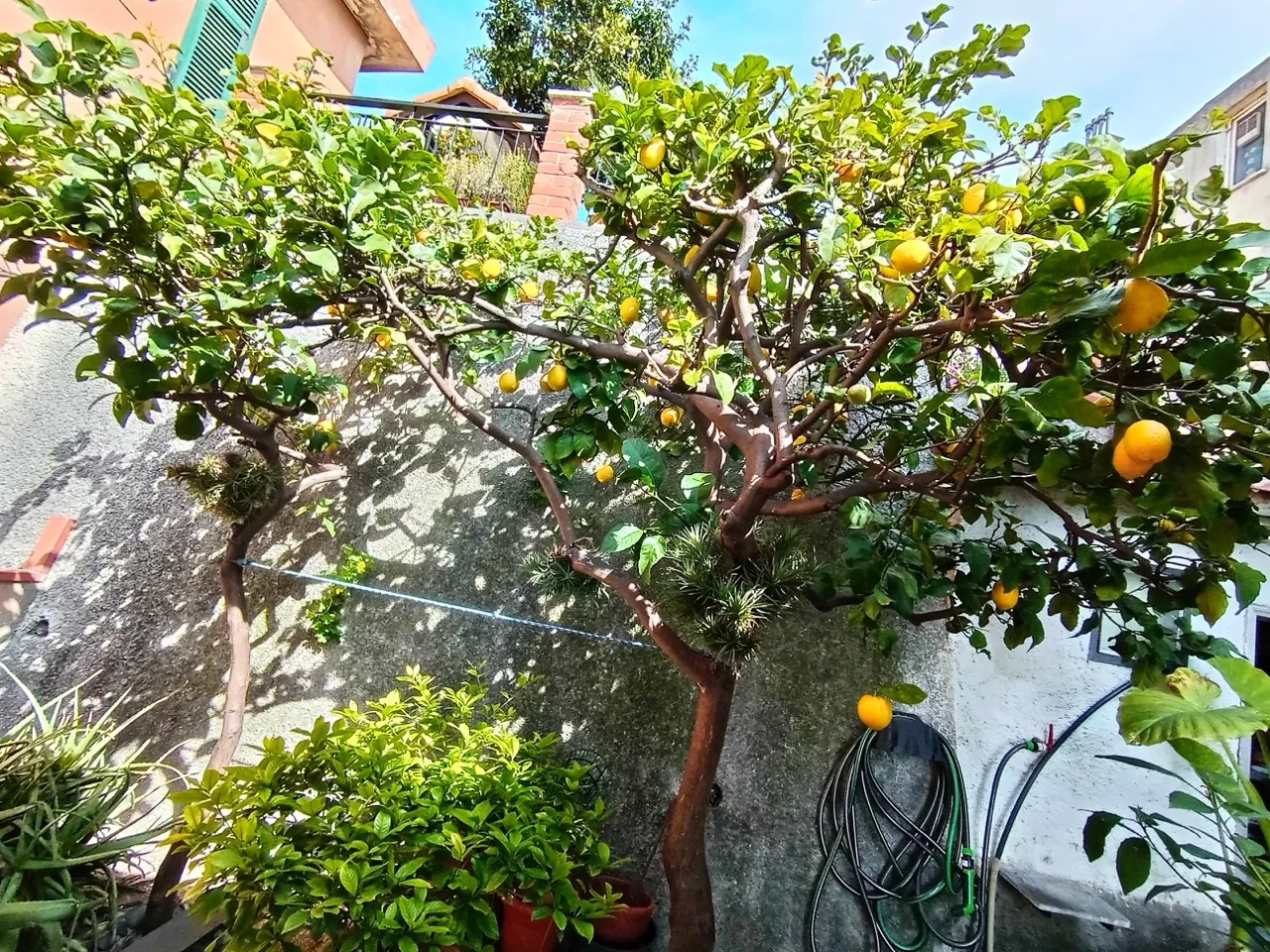 Un'ampio terreno terrazzato coltivabile di oltre 500 mq con numerosi e vari alberi da frutto (ciliegi, prugni, aranci, cedri, fichi, nespoli, albicocchi, meli, cachi, uva fragola, kiwi, ulivi, etc.), erbe aromatiche (asparagi e finocchio selvatici, rosmarino, tarassaco, borragine, etc.), piante e fiori ornamentali (magnolia, passiflora, alloro, sambuco, viole mammole, trifogli, etc.), verdure (patate, zucche, zucchine, cavolini, cetrioli, pomodori, melanzane, etc.) con ricovero attrezzi, capanno e forno a legna per la pizza artigianale.