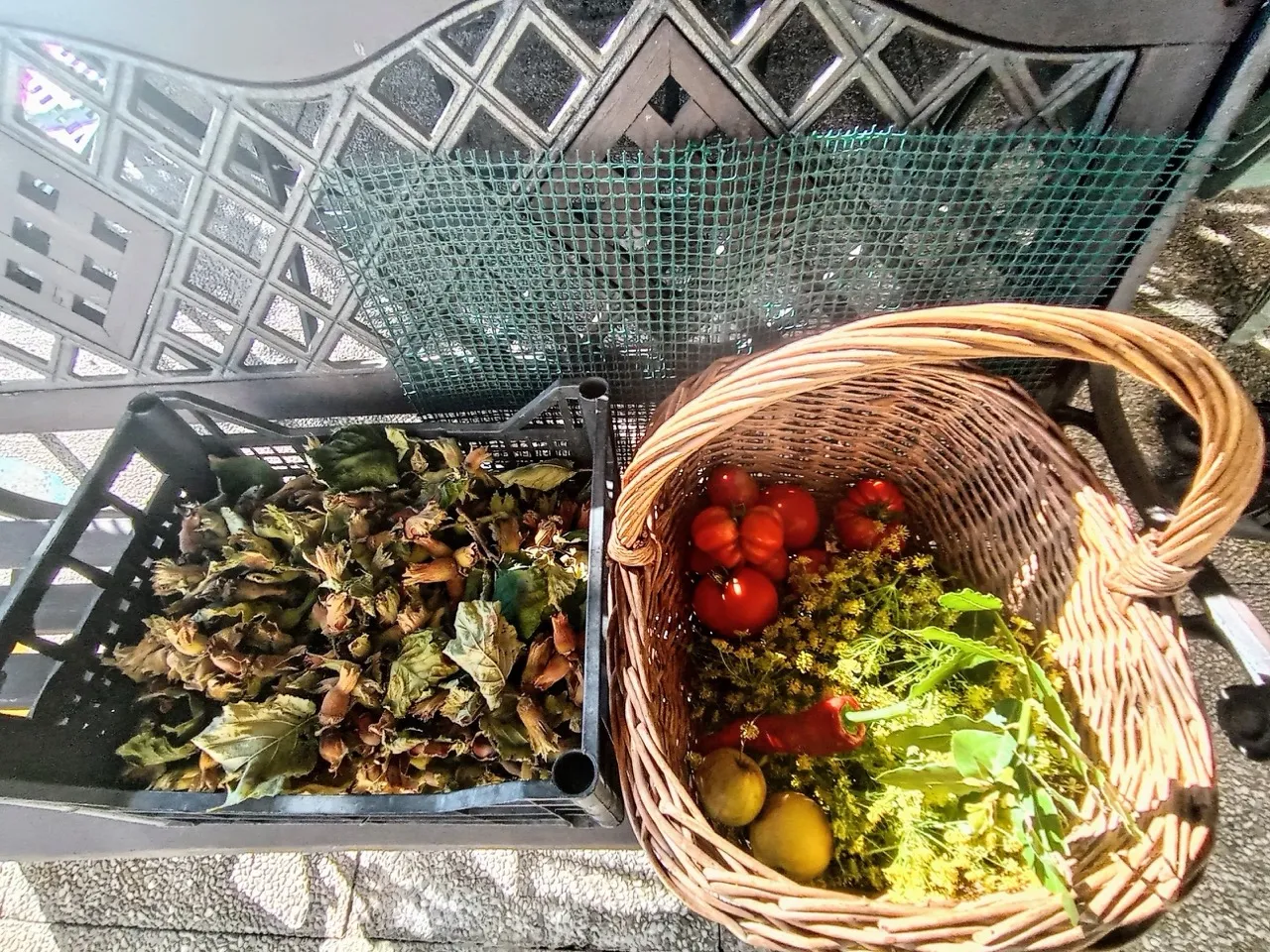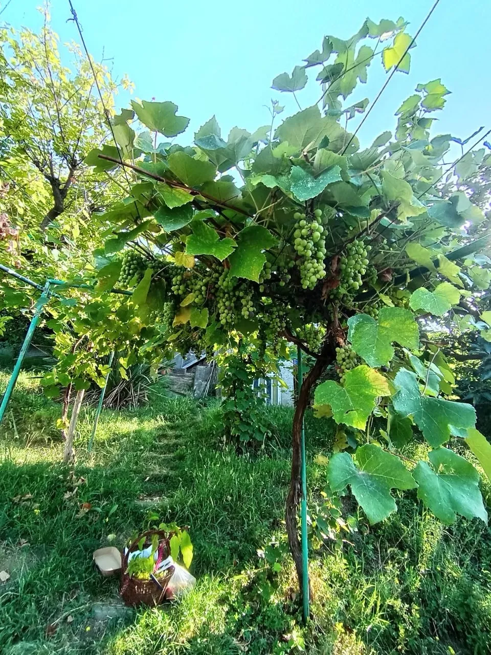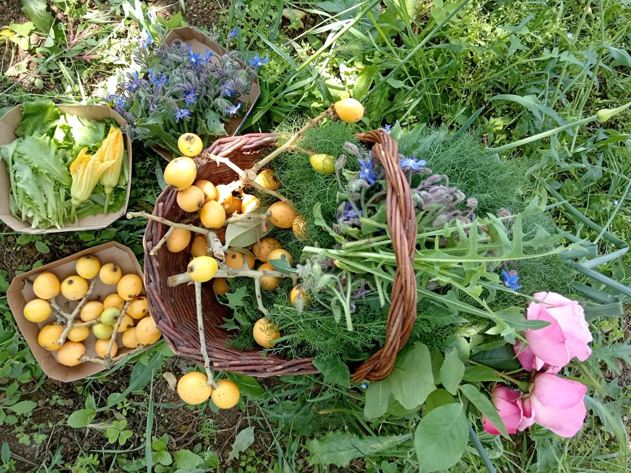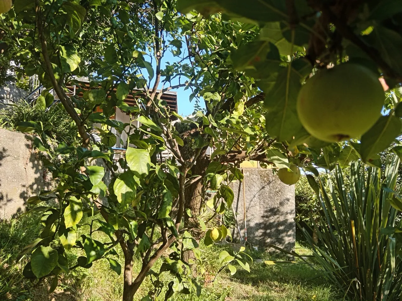 Un'ampio terreno terrazzato coltivabile di oltre 500 mq con numerosi e vari alberi da frutto (ciliegi, prugni, aranci, cedri, fichi, nespoli, albicocchi, meli, cachi, uva fragola, kiwi, ulivi, etc.), erbe aromatiche (asparagi e finocchio selvatici, rosmarino, tarassaco, borragine, etc.), piante e fiori ornamentali (magnolia, passiflora, alloro, sambuco, viole mammole, trifogli, etc.), verdure (patate, zucche, zucchine, cavolini, cetrioli, pomodori, melanzane, etc.) con ricovero attrezzi, capanno e forno a legna per la pizza artigianale.