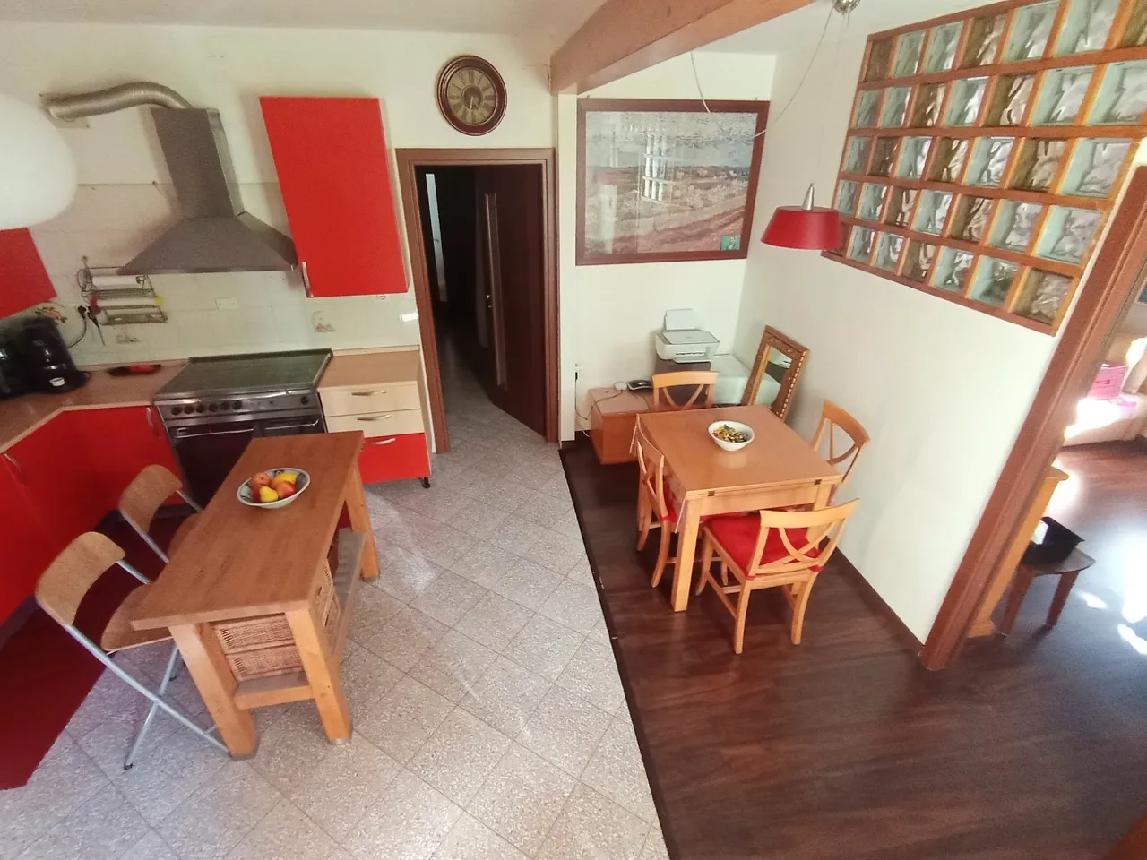 L'appartamento è composto da: Ingresso su zona giorno con soggiorno e cucina a vista. Due camere da letto, la matrimoniale con affaccio su un piccolo roseto, la seconda con vista su giardino e mare.