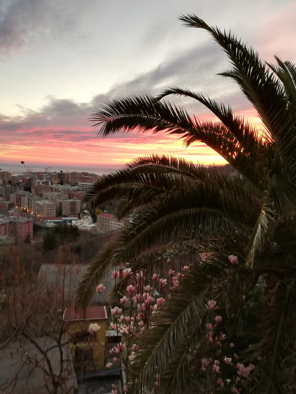 La proprietà gode di una vista panoramica sul mare, sull’abitato di Sestri Ponente e sulla sua Marina, come anche su tutta la Rivera di Ponente sino Capo Noli e oltre - a volte si vedono Ventimiglia e la Corsica -, con tramonti spettacolari che rendono ogni sera un'appuntamento magico!